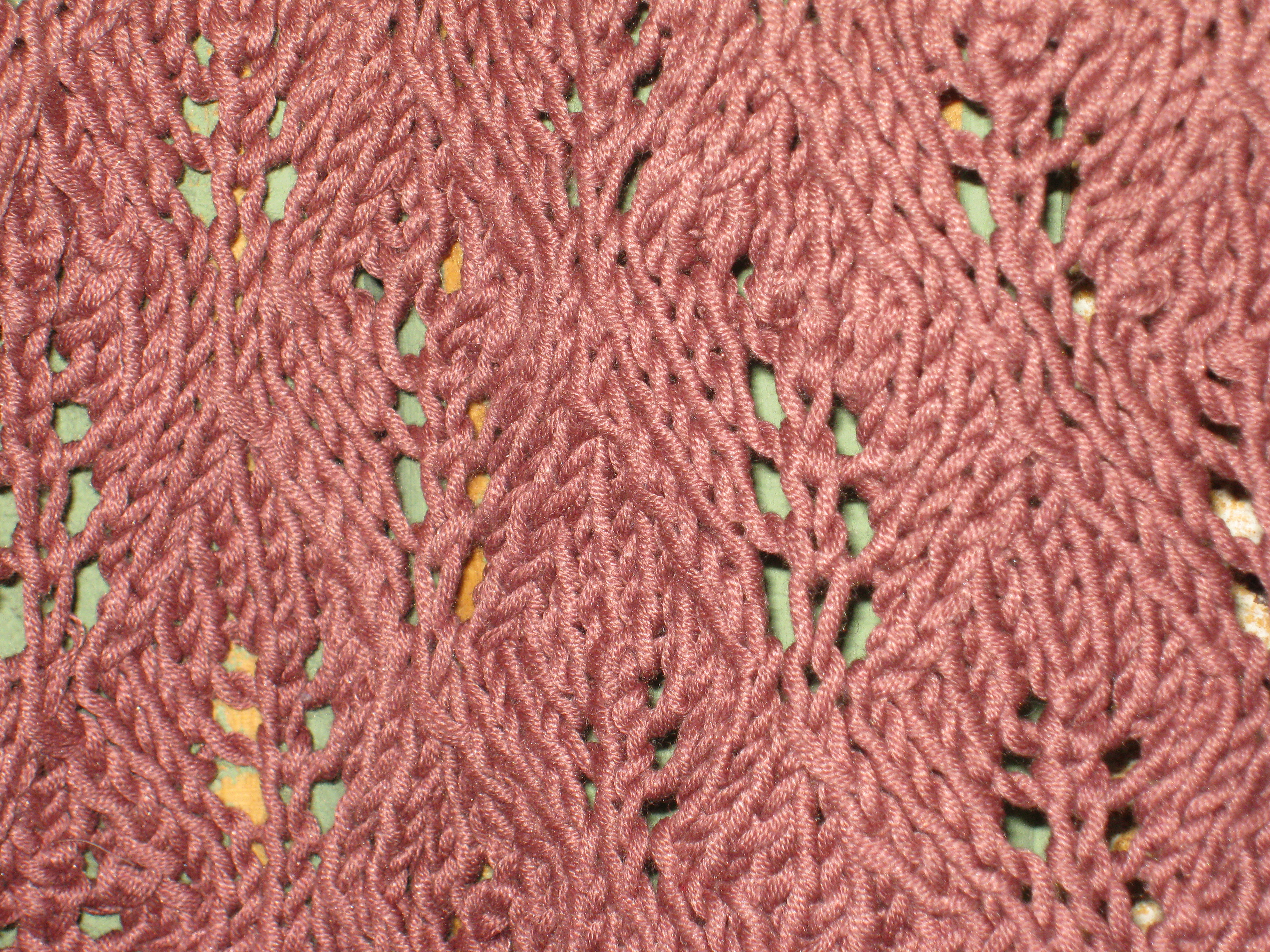 Here’s a peek at the Lovely Leaf Lace scarf stitch pattern up close –