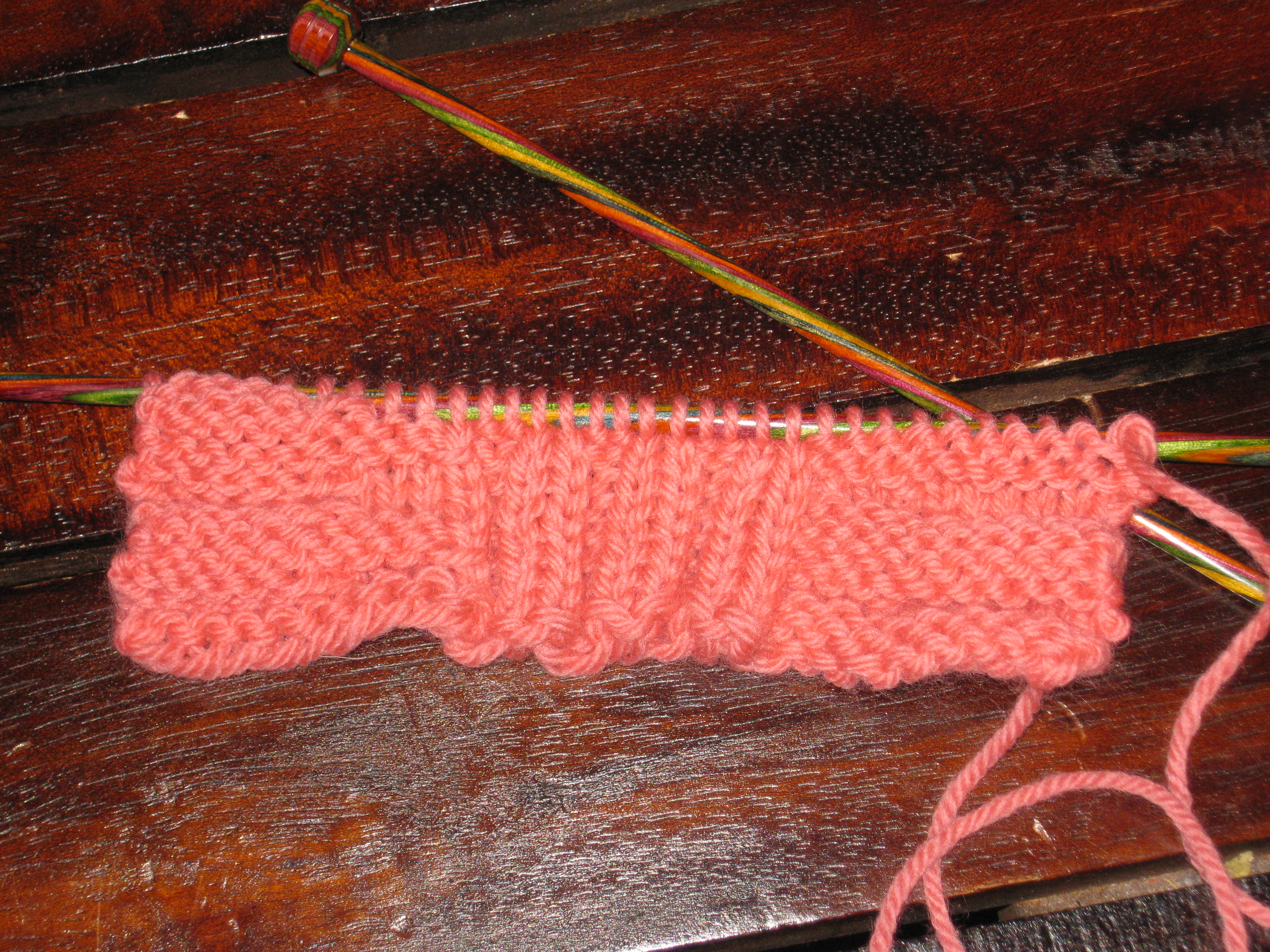 to continue on with the Celebration socks in hopes that they will grow on me. I started another Molly scarf to sort of cushion the blow of forging ahead with the socks. Here’s a quick peek