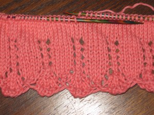 This is the eyelet picot pattern that nearly drove me batty last week. I think putting the whole project into time out did the trick.