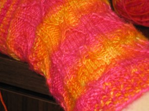 A little progress on the Slippery Sock. See? Will I get to the toe tonight? Stay tuned to As the Heel Turns. (giggles at her own witticism) Knitting humor never gets old.