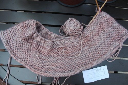 Apparently, I was able to grab my knitting on the way to the mothership (see above) and started a new project, Honey Cowl. Details here. i had a skein of Mad Tosh in a one of a kind colorway, Nectar, which is working up nicely. If all goes as planned and I don’t have another appointment aboard the mothership (see above), it will be off the needles in time for FO Friday. It’s not the most exciting project, but it works up quickly and easily enough.