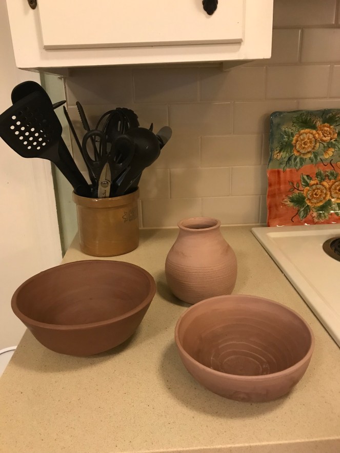 A couple more days of drying time and then they’ll be ready to bisque fire, the first step toward a finished pot.