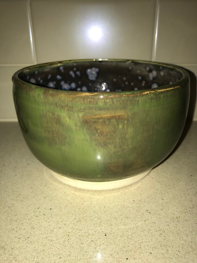 A bean pot that has been washed and reglazed several times. (I’m not usually this indecisive.) Final glaze is Textured Turquoise. (Probably)🤔