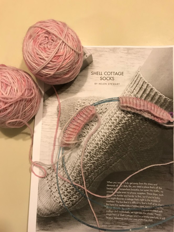 After finishing the Kew socks yesterday, I stalked some patterns on Ravelry and decided on a shrug with 3/4 sleeves, the purpose of the sleeves being to hide what I call toothbrush arms. As in, when you stop brushing your teeth, but your upper arm doesn’t…. OK, back on track. So, I found a pattern with all the required features and then found out I didn’t have enough yarn to start. Oh, lots and lots of yarn, just not enough of any one for my new project. A trip to Hobby Lobby fixed that and I cast on and got started this afternoon. The yarn is I Love This Cotton in Arctic Blue. The shrug pattern is here.